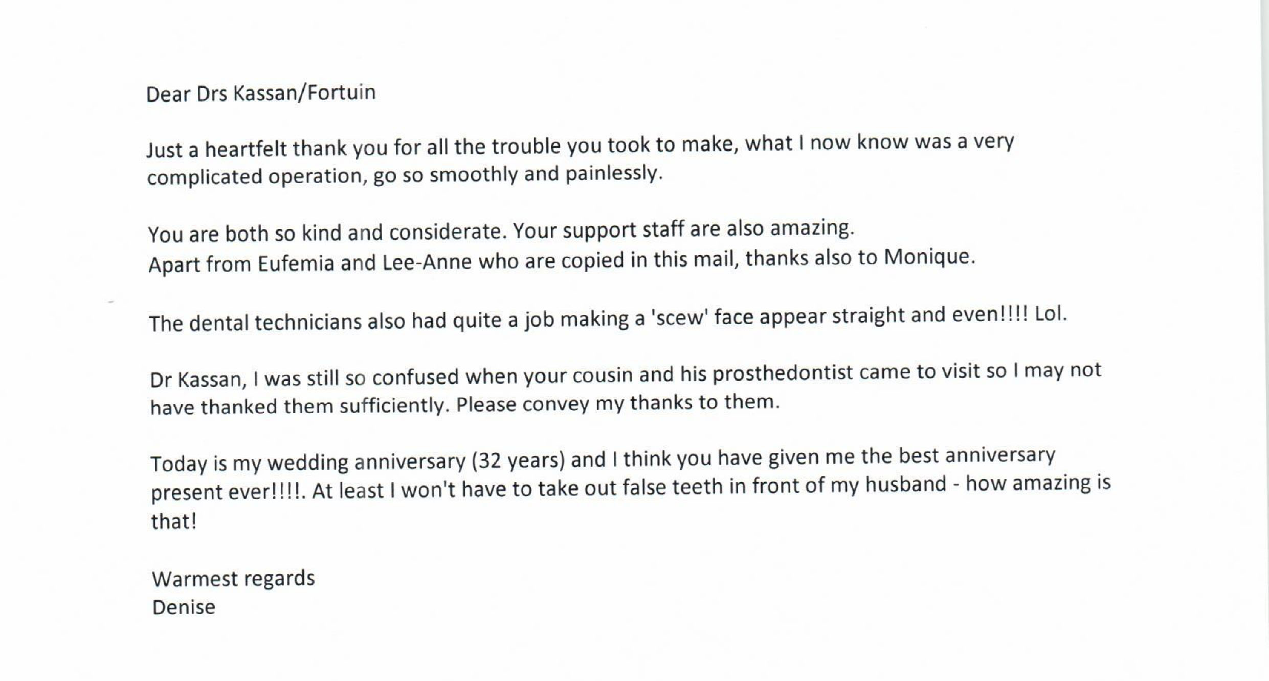 Thank you Dr Kassan. We appreciate your extremely kind generosity in a very difficult season and for your special time in consulting, reassuring and guiding Marcia & Siya forward.